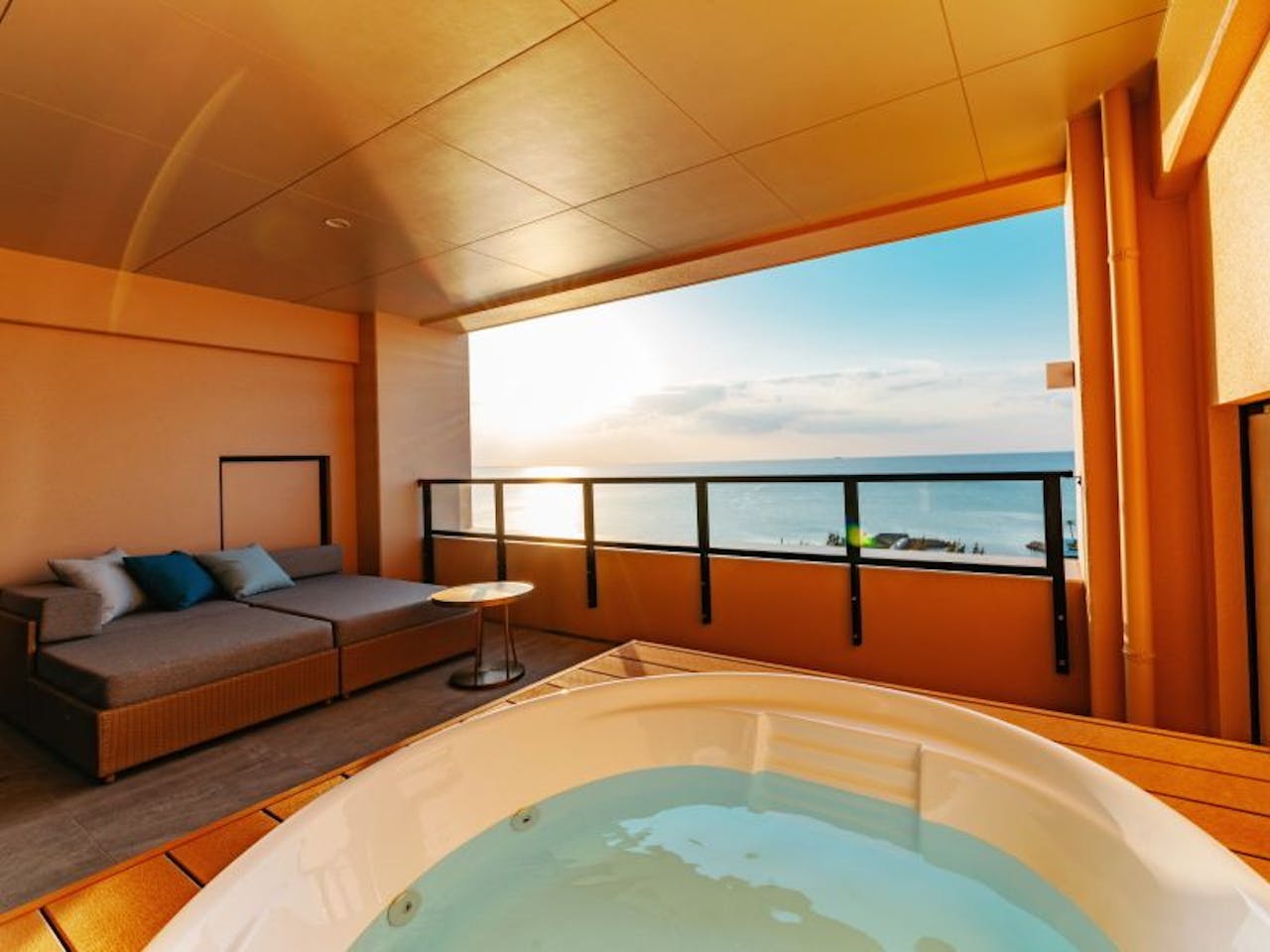 那覇空港から車で60分、恩納村に佇む「AQUASENSE Hotel & Resort」。全室オーシャンビューで、バルコニーにはジェットバスが完備されています。海を眺めながら楽しめるプールやジェットバス、アウトドアバーもあり、沖縄の自然を満喫できるのが最大の魅力です。食事は新ジャンルの「琉球チャイニーズ」が楽しめます。
