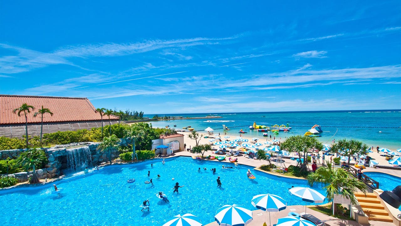 那覇空港から車で約75分、目の前に天然ビーチが広がる、リザンシーパークホテル谷茶ベイ。夏季はビーチと施設内屋外プールで楽しめるほか、インドアプールは年間を通して利用可能です。年齢制限なし、3歳以下の子どもは無料で参加できるカヤックツアーや人魚の衣装でコスプレが楽しめるアクティビティなど、家族で楽しめるサービスが数多く揃っています。