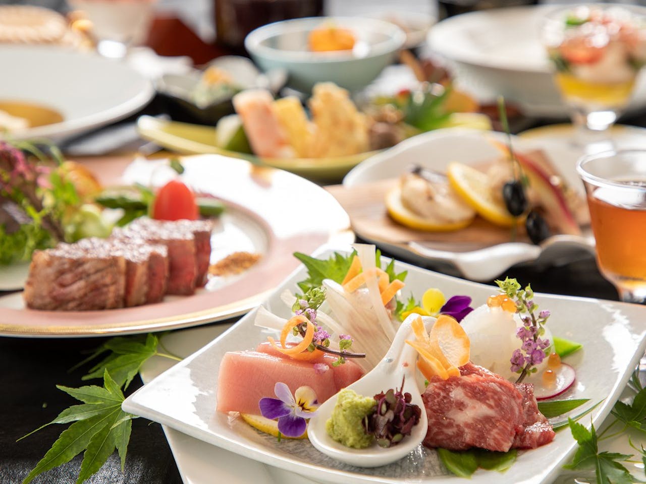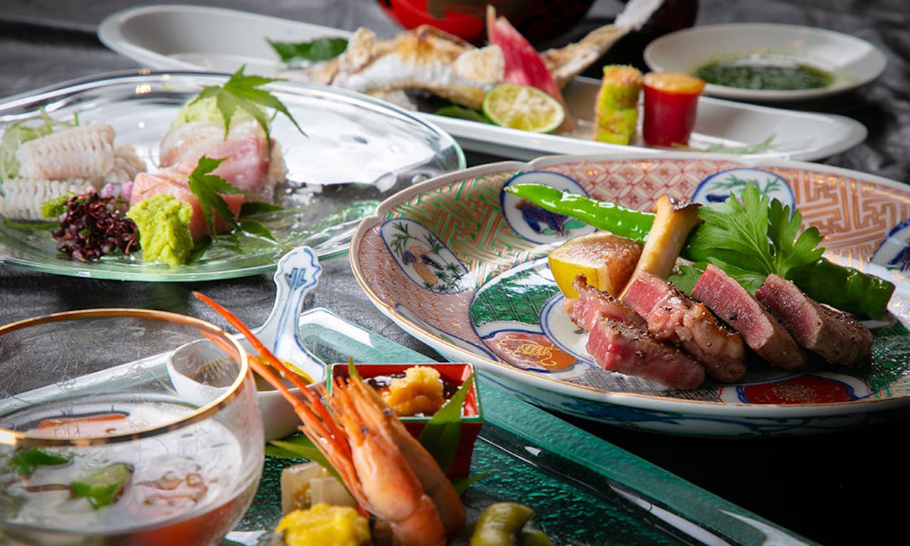 阿蘇くまもと空港から車で約30分、菊池市の高台に位置する「御宿 白金の森」。新鮮な地場野菜をふんだんに用いた創作料理が人気のオーベルジュです。夕食は阿蘇あか牛のステーキがメインの会席、朝は採れたての野菜や卵と土鍋で炊いた菊池米のヘルシーな和食を提供。個室レストランでゆっくり料理を堪能できます。