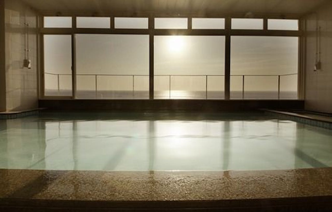 「ベッセルホテルカンパーナ沖縄」は、那覇空港から車で約40分、サンセットビーチまで徒歩2分のアメリカンビレッジ内にあるホテル。本館と別館の最上階に、展望浴場とドライサウナを完備しています(女性用サウナは別館のみ)。浴場からは海が一望でき、水平線へ沈む夕日を眺められる、日の入り頃の利用もおすすめ。