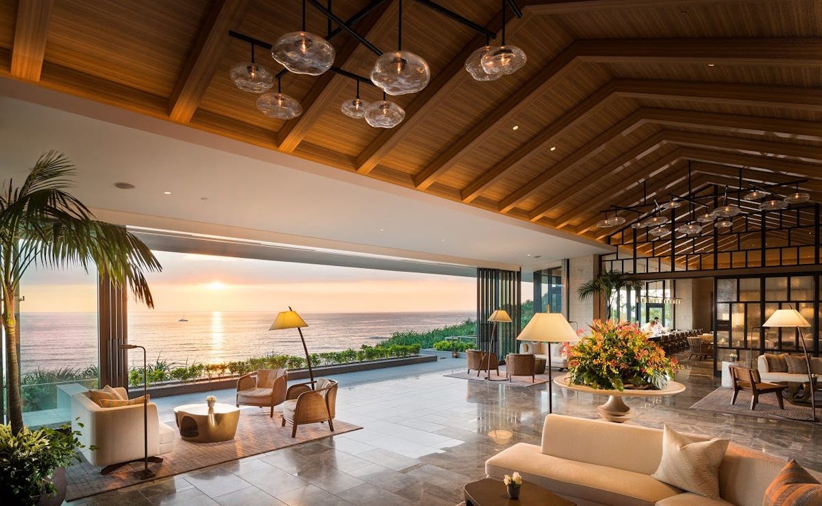 那覇空港より車で約75分、リゾートエリアとして知られる恩納地区に佇む「ハレクラニ沖縄」は、ハワイにある本館に続くハレクラニ2号目のホテル。全室オーシャンビューの客室や、ロビー、ガーデンプールからは、東シナ海に沈む夕日を一望できます。ミシュランの2つ星シェフがプロデュースする自慢の料理も要チェック。