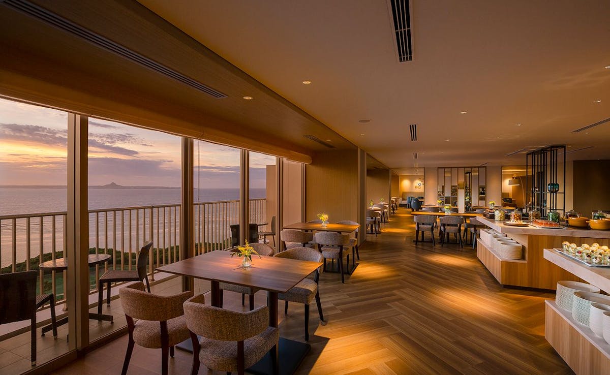 那覇空港から車で約90分、沖縄本島と橋つづきの瀬底島に佇む「ヒルトン沖縄瀬底リゾート」。東シナ海に沈む夕日と水平線に浮かぶ島々のコントラストを楽しめるリゾートホテルです。徒歩2分の立地にある瀬底ビーチは、天然の白砂。未就学児の添い寝や朝食は無料と、家族連れにも嬉しいサービスを提供しています。