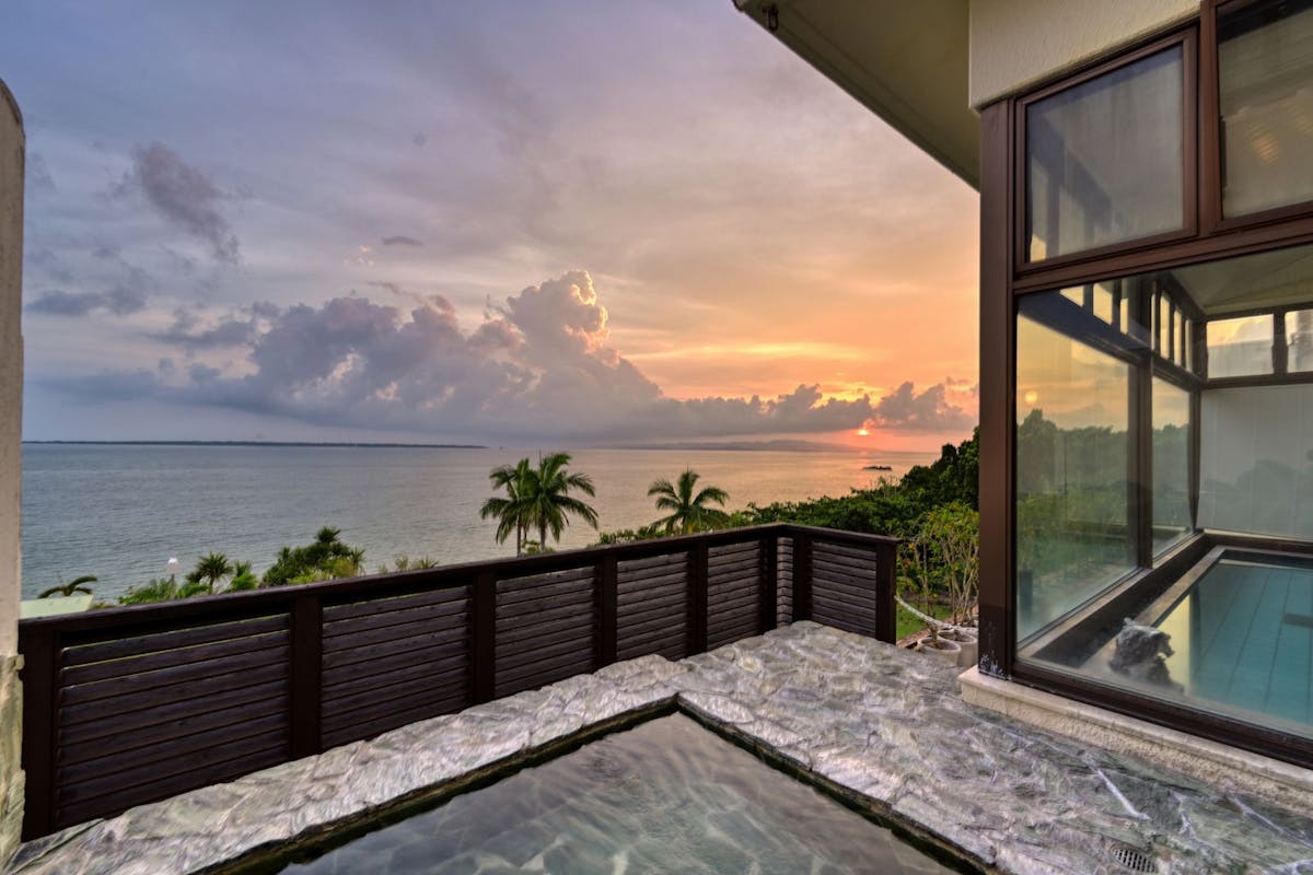 那覇空港から車で約70分、恩納村にある「沖縄かりゆしビーチリゾート・オーシャンスパ」は、開放感あふれるリゾート空間。2つの宿泊棟にはそれぞれ展望風呂が備えられ、アロエで潤う露天風呂からは、広大な東シナ海を目に焼き付けられます。マリンスポーツはもちろん、琉球ガラス作りやシーサーの絵付けといった文化体験も可能です。