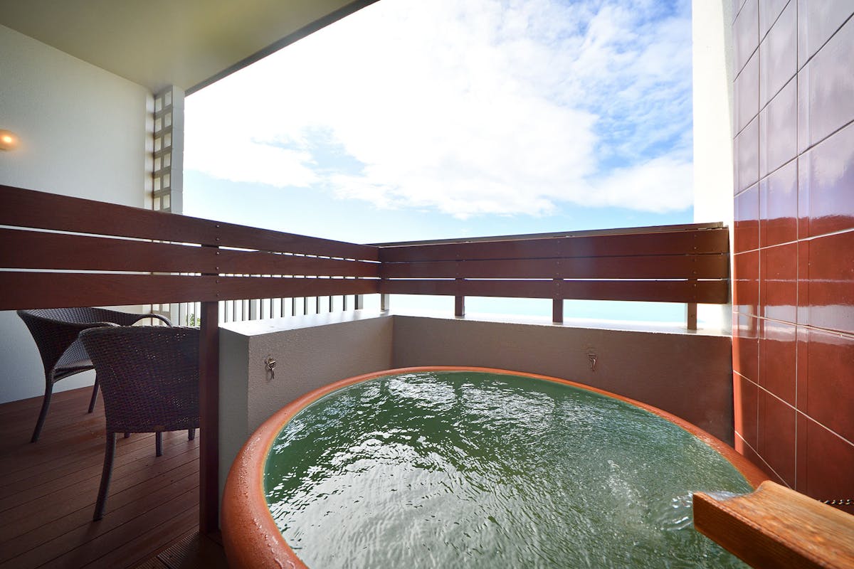 おすすめのプランは「【Senaga Style】新しい沖縄旅行のかたち<那覇空港から一番近い温泉付リゾート>/朝食付き、露天風呂付き和洋室【オーシャンビュー】禁煙」32,505円~(2名、朝食付)。