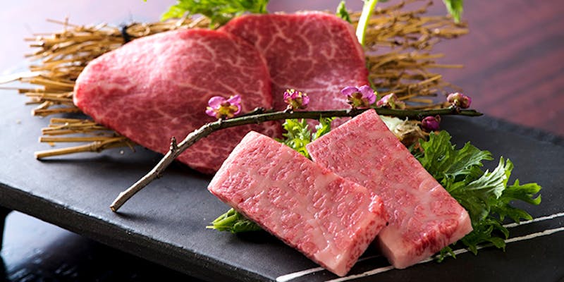 銀座 山科は、東京メトロ「銀座駅」から徒歩1分の外堀通り沿いに佇む焼肉料理店。目利きが厳選した一級品の黒毛和牛を、その日の肉の状態や部位・カット方法などに合わせて、専属の焼き師が調理・提供しています。名物の「黒毛和牛の特製ヒレカツサンド」は、コース料理でも味わえる大人気メニュー。