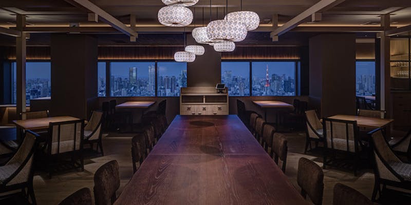 JR山手線「恵比寿駅」から恵比寿スカイウォークで約5分、恵比寿ガーデンプレイスタワーの38階にある「THE KINTAN STEAK」。和牛を中心とした厳選牛のタンやミスジ、サーロインなどさまざまな部位のステーキが味わえる人気店です。和と洋のフュージョン・デザインが特徴的な店内は、ライティングにもこだわった上質な空間。