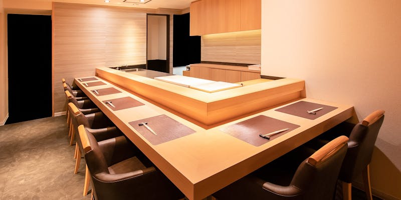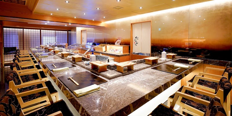 都営浅草線・東京メトロ日比谷線「東銀座駅」から徒歩1分の「天ぷら 銀座おのでら 東銀座店」。食材はもちろん、油や小麦粉までこだわり抜いた天ぷらを専属ソムリエが選定したシャンパンとともに堪能できます。テーブルを華やかに彩る、特注の食器にも注目してみてください。