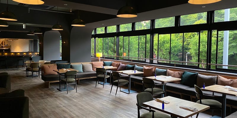都営地下鉄大江戸線「都庁前駅」から徒歩5分、ホテル「THE KNOT TOKYO」の2階にある「MORETHAN GRILL/THE KNOT TOKYO Shinjuku」。こだわりのオーブンで焼き上げるグリル料理のほか、和やフレンチのエッセンスを取り入れた創作イタリアンが楽しめる人気店です。広々とした店内は、モダンでゆったりとした雰囲気。