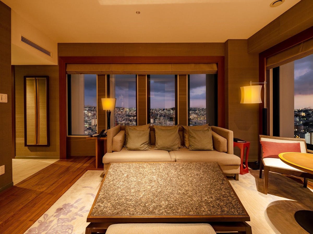 沖縄都市モノレール旭橋駅直結、那覇空港からも好アクセスな「リーガロイヤルグラン沖縄」は、リーガロイヤルブランドの最上級ホテルです。全室35平米以上の広々とした客室には、こだわりのベッドや洗い場付きのバスルームを完備。最上階のバーラウンジでは、那覇の夜景を眺めながらゆったりとした時間を過ごせます。