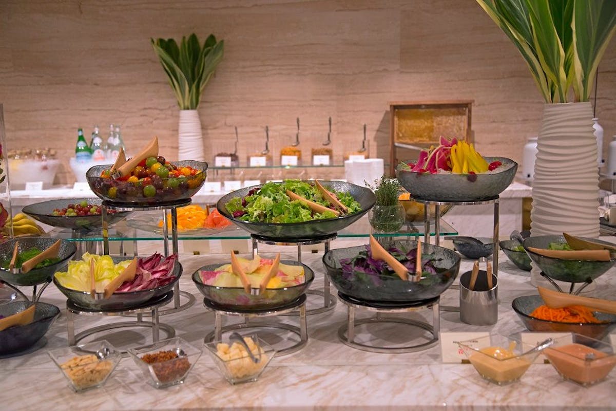美浜アメリカンビレッジに隣接し、県内最大級のプールを備えた「ヒルトン沖縄北谷リゾート」。朝食ビュッフェには、60品以上の多種多様なメニューが並びます。テラス席では、青空の下でオーシャンビューを眺めながら朝食が楽しめ、沖縄らしさいリゾート感を演出してくれます。