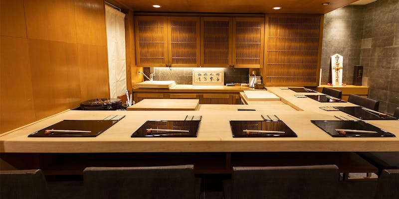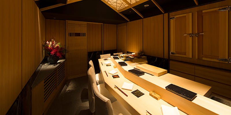 東京メトロ銀座線「銀座駅」A5番出口から徒歩1分の場所に位置する「栞庵 やましろ」。3年連続でミシュラン一つ星を獲得している日本料理の名店です。京都で腕を磨いた料理人による寿司会席は、旬の新鮮食材にこだわり、素材の味と鮮やかな色合いを楽しめる逸品。