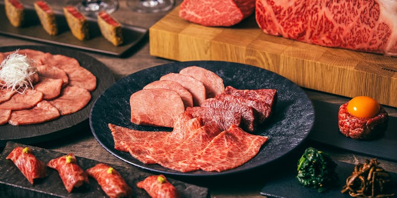東京メトロ・都営地下鉄「新宿三丁目駅」E4番出口から徒歩2分の「エイジング・ビーフTOKYO」は、和牛の熟成肉が自慢の焼肉店。厳選部位の焼肉に加え、肉寿司や焼きすきなど、人気メニューを幅広く堪能できるコースがおすすめです。カフェのような明るい雰囲気の店内には、カウンター・テーブル席のほか、最大14名まで利用可能な個室を完備しています。