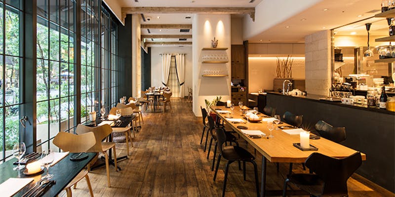 東京メトロ東西線・日比谷線「茅場町駅」より徒歩4分の場所に位置する「アサヒナガストロノーム」。店内は「モダン過ぎず、古典過ぎず」をコンセプトとしたインテリアを取り入れた、スタイリッシュな空間です。ジョエル・ロブション氏の下で修行を積んだ料理長の、芸術性溢れるフレンチコースが堪能できます。