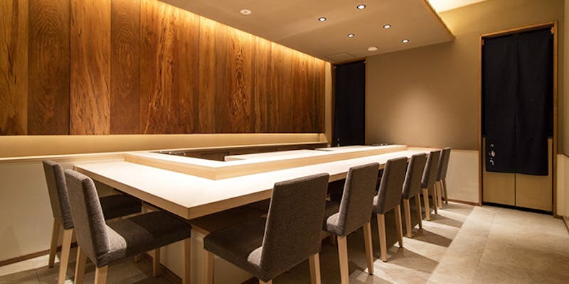 ランド六本木ビルのB1Fにある隠れ家「鮨 由う」。有名割烹店や高級旅館を担当した設計士による店内デザインが特徴的な鮨店です。木目調のテーブルに提供されるのは、一つ星を獲得する至極のコース。中トロやコハダ、車エビなど握りのほか、茶碗蒸しや白子などのつまみを味わう贅沢時間を過ごしてみては。