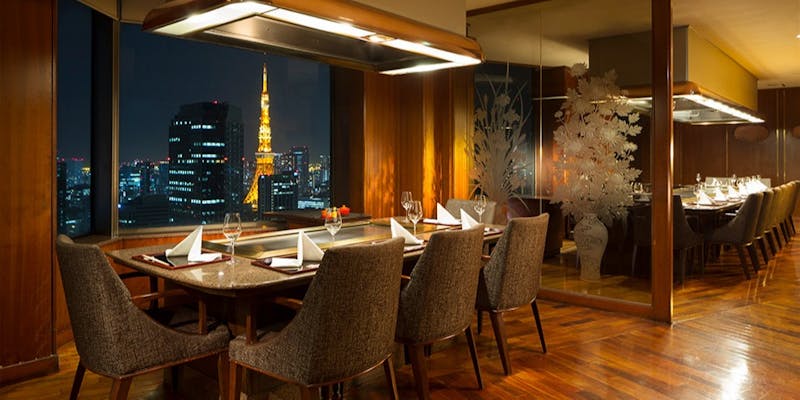 ANAインターコンチネンタルホテル東京の最上階にある「鉄板焼 赤坂」。東京の景色が望める店内で、最高ランクの和牛や旬の魚介類を鉄板焼きで楽しめます。オニオンソースや岩塩など、好みの味付けを選択できるのも魅力の一つ。鉄板で作るガーリックライスも人気です。