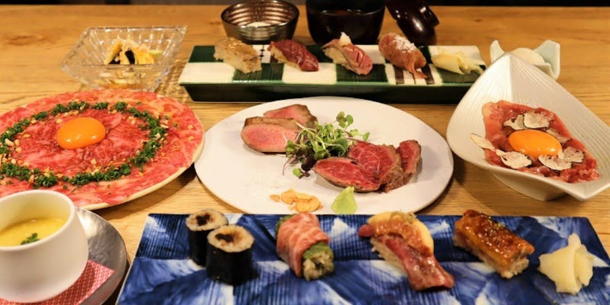 見逃せないプランは「ディナー夏の牛肉寿司8貫コース】牛肉寿司8貫、プラチナユッケ、トリュフすき焼きに熟成舌が楽しめる」、9,800円(1名)。