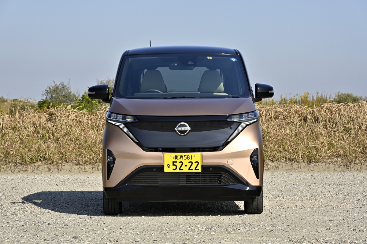わが家にやってきた「サクラ」は、暁-アカツキ-サンライズカッパー×ブラック2トーンのボディ色の上級Gグレードでした。そのエクステリアは、日産の高級電気自動車であるアリアを彷彿させるフロントマスクが象徴するように、先進感と上質感溢れる軽自動車の域を超えた、シンプルながらダイナミックなデザインと言っていいでしょう。実は、「サクラ」は、車両価格500万円を超える電気自動車のアリアのエッセンスを軽サイズで実現することに挑んだ電気自動車なのだとか。