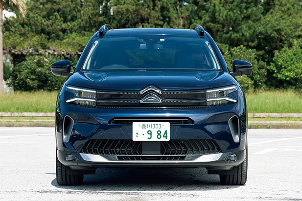 新世代のフロントデザイン。シトロエンのアイコン、ダブルシュブロンを中心にしたグリルと平行した2本のデイタイムランニングライトが特徴。バンパー左右には空気取り入れ口も。
