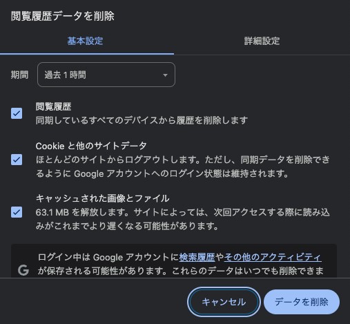■ブラウザ(Chrome)のキャッシュを削除する手順