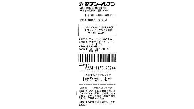 [5]レジで「プリペイド番号通知票」を受け取ります。「チャージコード」が書かれています。
