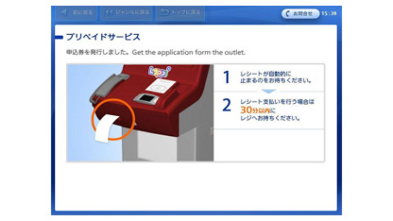 [6]Loppiから印刷される「プリペイドサービス申込券」をレジへ持って行きます。レジにてチャージコードの購入金額を支払います。