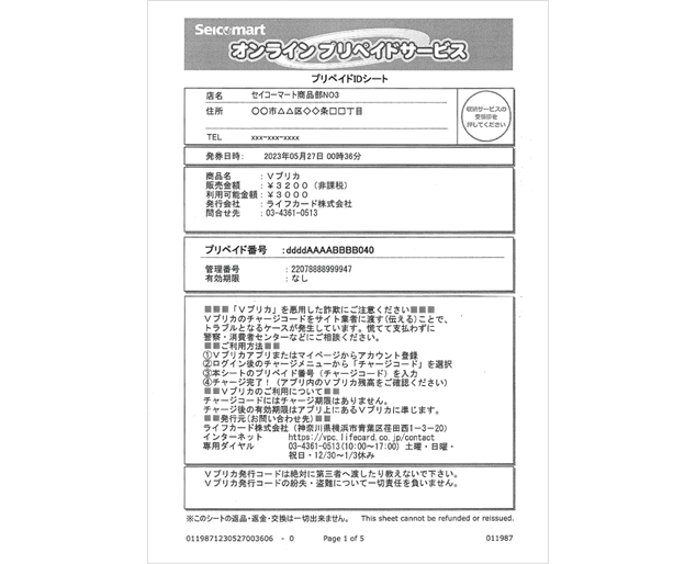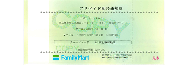 [3]レジで「プリペイドIDシート」を受け取ります。こちらに「チャージコード」が書かれています。