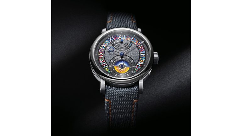 ホワイトゴールド製のローマ数字の下にあるアワー·サークルには、古代のステンドグラス窓のデザインを彷彿させる華麗な細密画が「ラ·ファブリク·デ·ザール」の専門職人によって描かれた。
