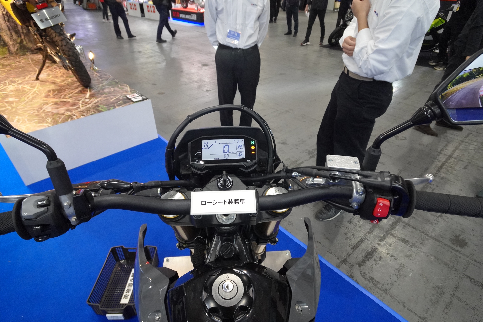 左手側に付いているスイッチは、スズキインテリジェントライドシステムの操作ボタン。パワーモードやトラクションコントロールなどが選択できるそうで、気軽なツーリングから本格スポーツ走行まで、あらゆる場面で心強い相棒となりそうです。