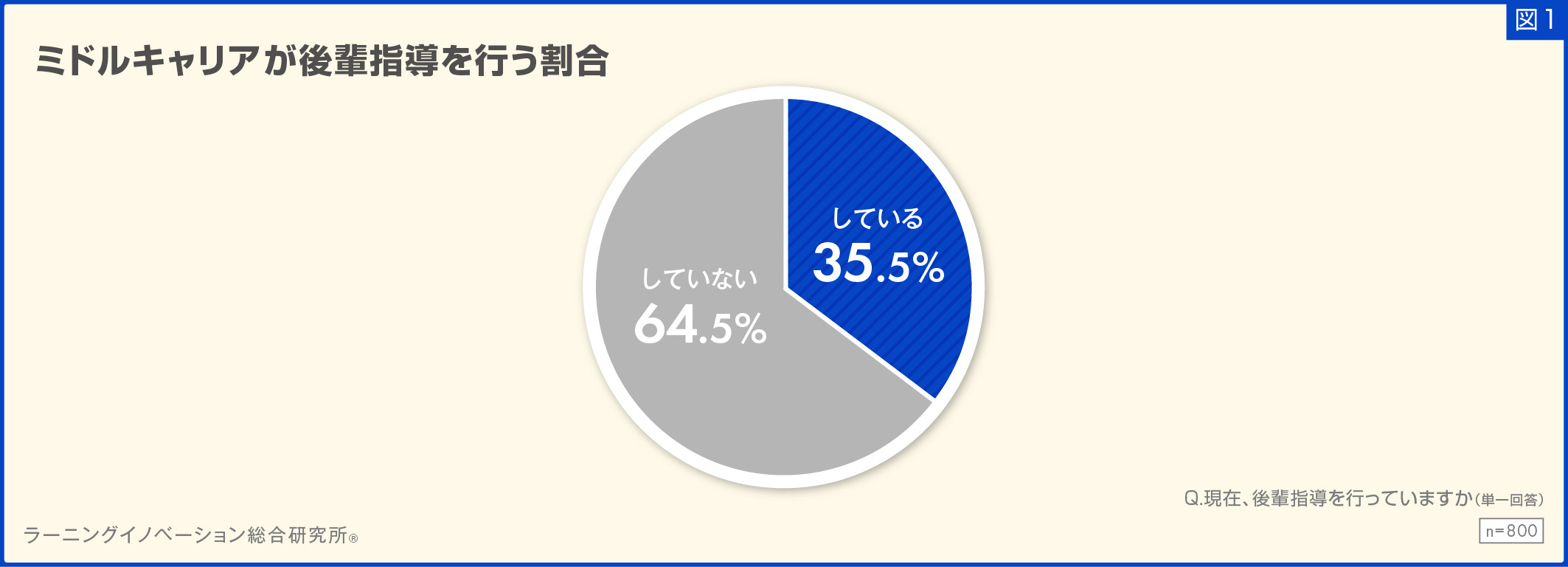 本調査より、ミドルキャリアのうち、後輩指導に携わっている人は35.5%であることが明らかとなった。