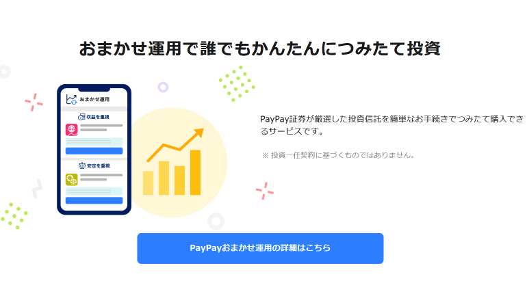 PayPay資産運用は、PayPayアプリ内で簡単に資産運用ができるサービス。サービス提供元はPayPay証券となります。