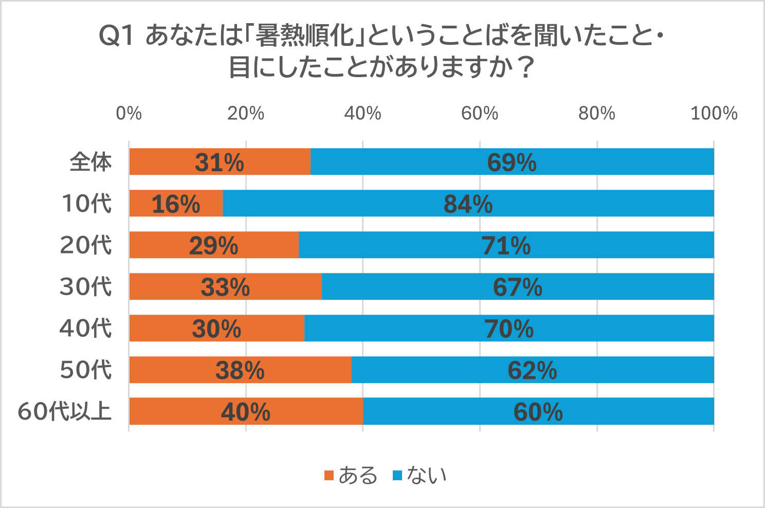 「暑熱順化」ということばを聞いたこと・目にしたことがある人は約3割と、それほど高くない結果になった。
