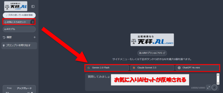 「お気に入りAIセット」をクリックすると、登録したAIモデルがすぐに呼び出せる。