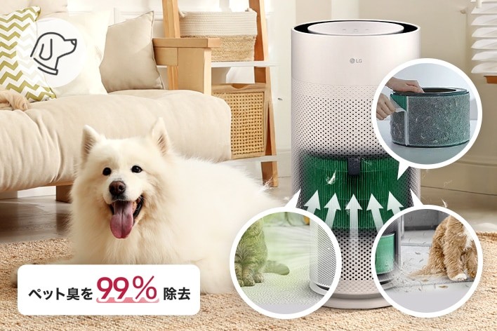 ペット由来のアレル物質や気になるニオイ、花粉などを99%除去!