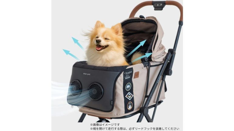 コンビは、ペットのためのブランド「compet」から、ペットカート専用の送風機付きシート「マルニ デュオクール」を2025年8月中旬に発売する。希望小売価格は11,000円。