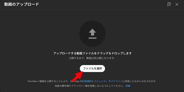 「ファイルを選択」をクリックし動画素材をアップロードする。
