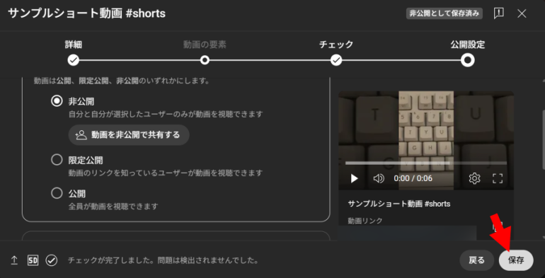 関連動画や字幕の設定、著作権のチェック、動画の公開・非公開設定や、予約投稿の設定を済ませよう。