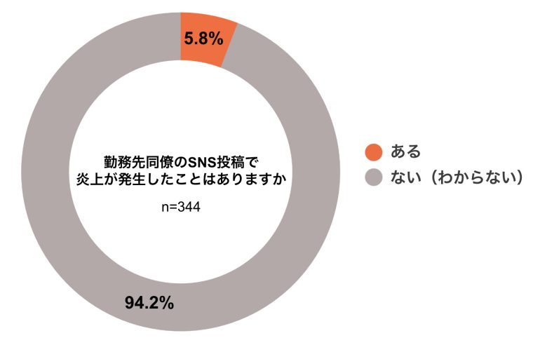 同僚のSNS投稿で炎上が起きた経験について尋ねたところ、「ある」との回答が5.8%でした※。