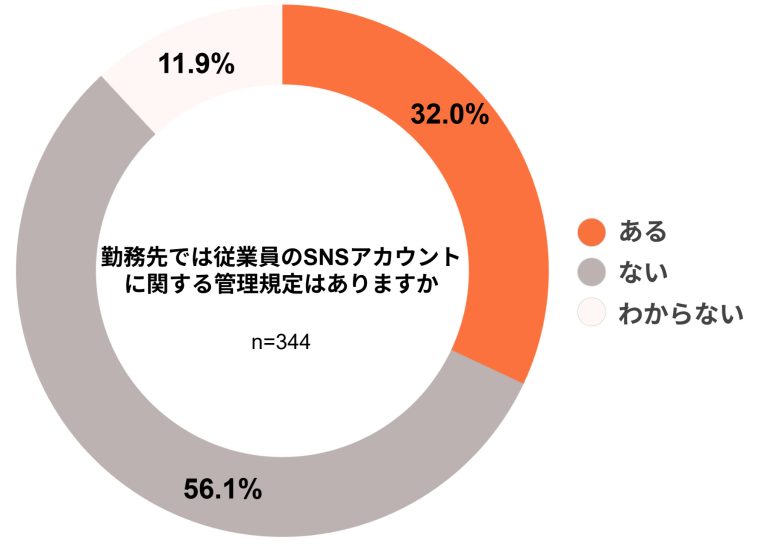 勤務先にSNS管理規定があるかを尋ねたところ、「ない」が56.1%となり、「ある」の32.0%を上回っていた。