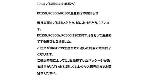 なぜレクサスは、ブランドをリードするイメージモデルであるRCとISの生産を、IS300hの2WDモデルを除き終了する決断を下したのでしょうか?