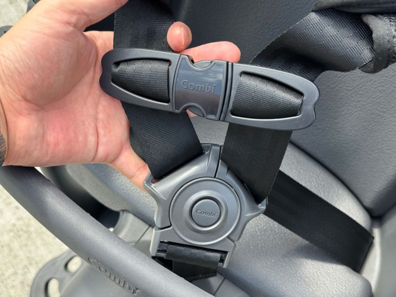 また、頭周りを保護するのは「エッグショック」素材。コンビが独自開発した素材で、ウレタンの約3倍の衝撃吸収力があるという。同社のベビーカーやチャイルドシートでも採用されている。