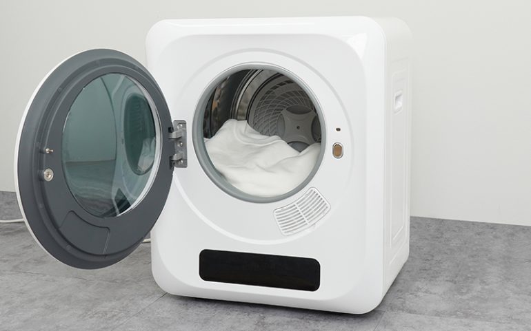 本製品は、設置工事不要で手軽に使える、コンパクトサイズのドラム式衣類乾燥機。コンパクトながらもドラム式を採用しているので、衣類を均一に乾かすことが可能だ。