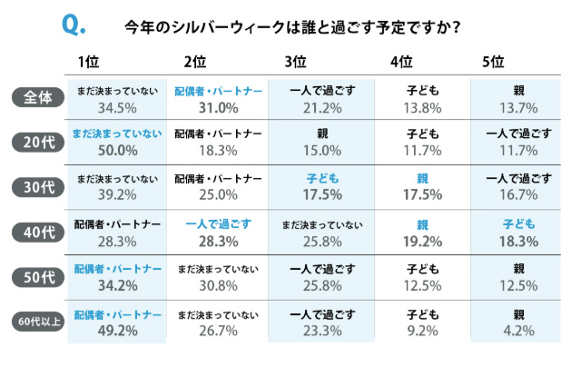 シルバーウィークは誰と?20代は“未定”、30~40代は家族、シニアは“夫婦”