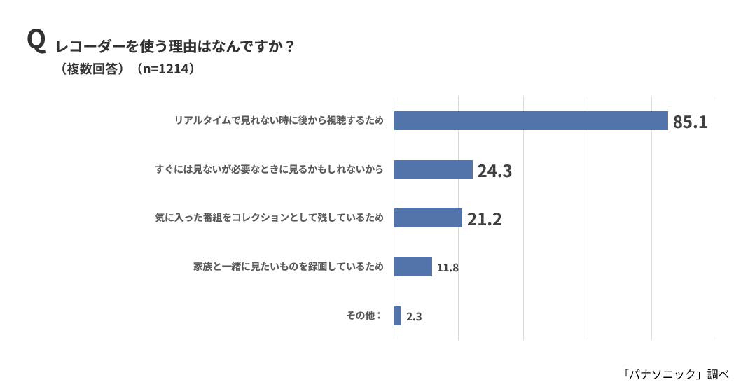 高齢者の7割以上がレコーダーを利用。用途は8割以上がリアルタイムで視聴できない時に後から視聴