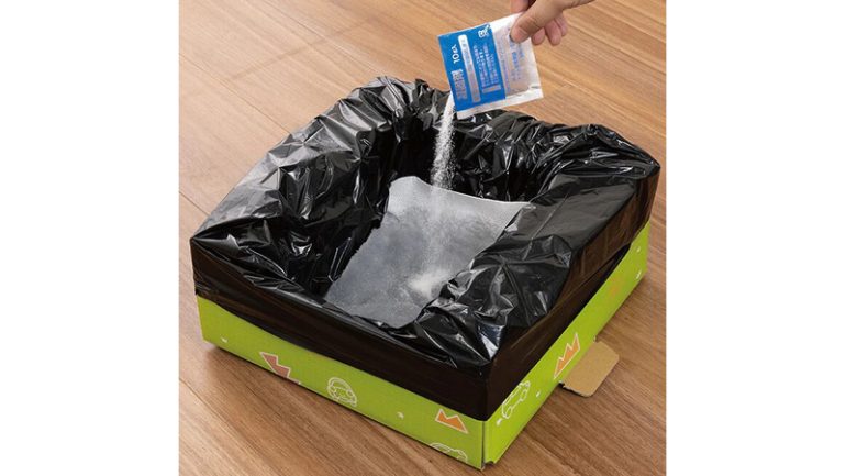 しかも、筒状の非常用トイレは「小」の使用に限られるが、この「簡易トイレコンパクト」は便座面から底までの高さが12㎝あるため、「大」でも使える設計となっているのが特徴だ(ここが重要)。