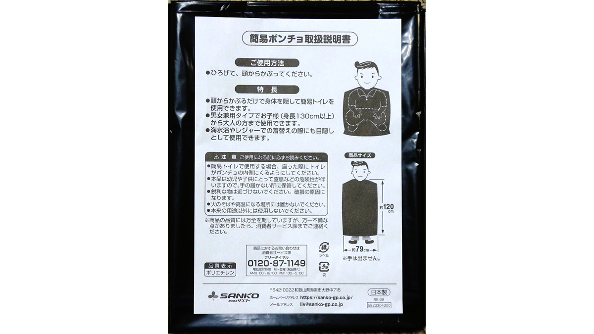 それが、防災、掃除、ペット用品などを中心に商品開発、製造、販売を一貫して行っている、和歌山に本社を構えるサンコーの「簡易トイレコンパクト」である。サンコーは2023~2024年度だけでも防災用品約80万個の販売実績があり、被災地へ足を運び商品開発に生かしている、日本製にこだわる生活サポート用品メーカーだ。