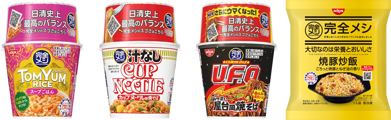 日清食品の挑戦の中核をなすのが、同社が長年研究開発を重ねてきた「最適化栄養食」だ。これは、私たちが普段親しんでいるラーメンやピザ、カレーといったメニューの見た目やおいしさはそのままに、カロリーや塩分、糖質、脂質などを精密にコントロールし、現代人に必要な栄養素をバランス良く調整した新しい食事の形である。わかりやすい例がすでに展開中の「完全メシ」シリーズだ。