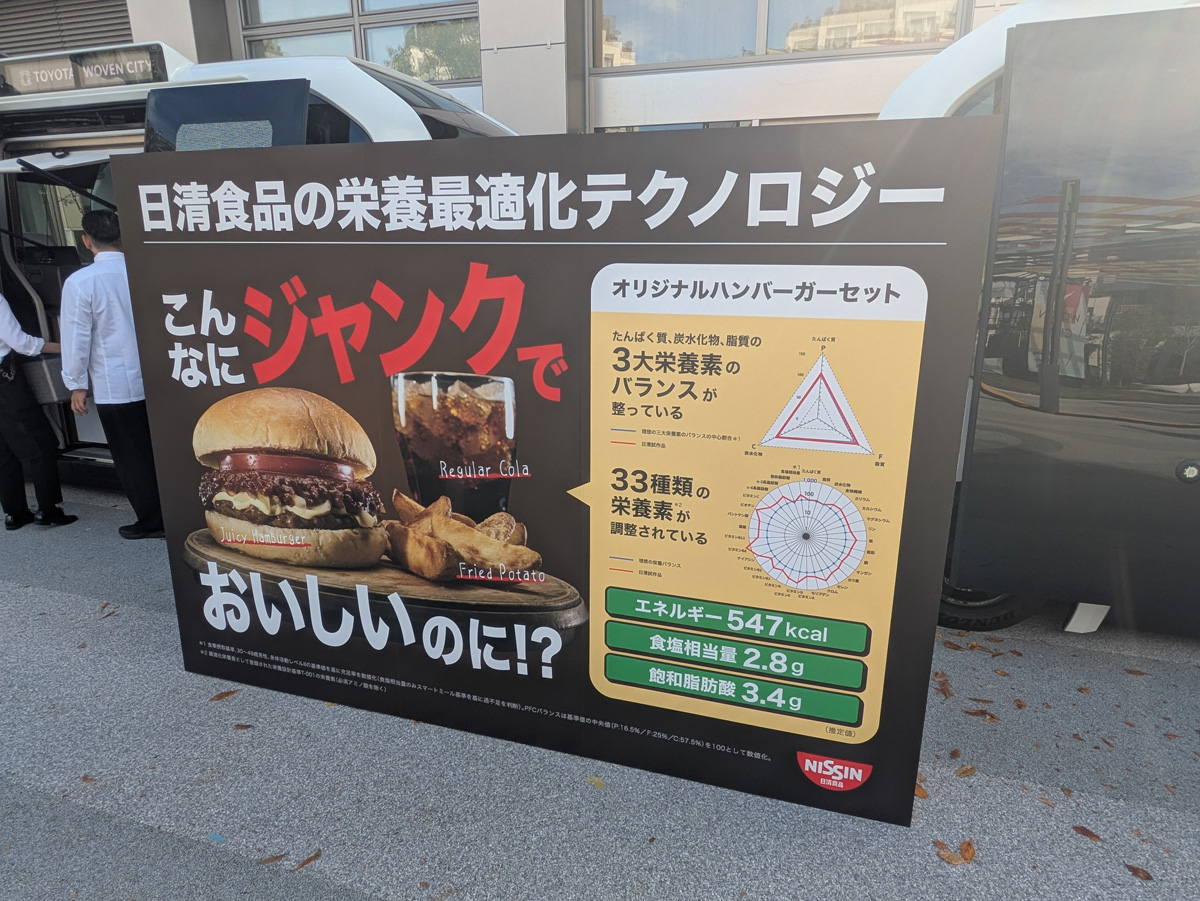驚くことにWoven Cityの住人にはこういったハンバーガーがなんと当面の間、〝無料〟で提供されるという(うらやましい!)。もちろんメニューはハンバーガー以外にも約50種類あり、今後は様々なメニューを提供していくという。ちなみに気になるのが住人以外のビジターへの提供だ。日清食品担当者に聞いてみたところ、ビジターへの提供に関しては現在のところ未定だという。「Toyota Woven City」のガイドラインに則って実施していくことになるとのことなので、今後の展開に期待したい(というか、このハンバーガーが食べられないのはもったいない!)。