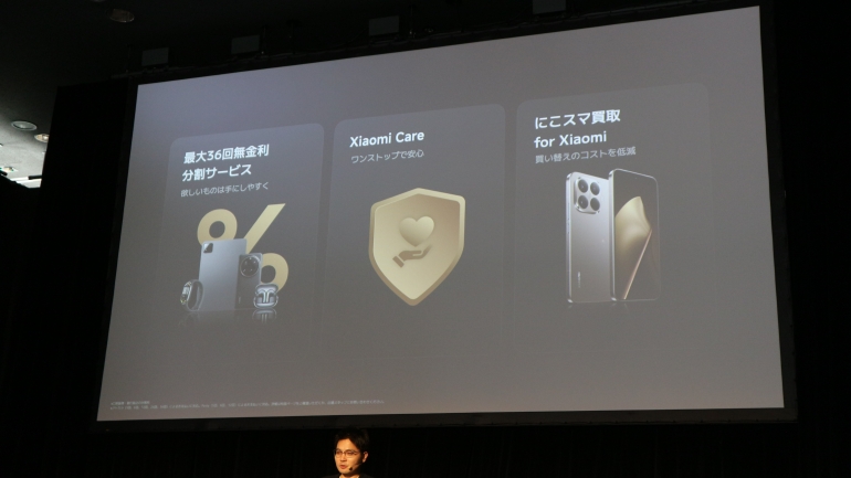 また、最大36回の無金利分割サービスや、保証サービス「Xiaomi Care」などを用意し、スマホを購入するための障壁となる初期費用、アフターサービスも強化。買い替えコスト低減のため、中古スマホ取り扱い事業者であるにこスマとタッグを組み、「にこスマ買取 for Xiaomi」も新たにスタートする。