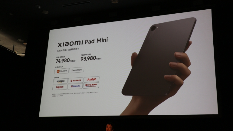 新製品に話を戻そう。スマホ以外で注目なのは、シャオミ初のコンパクトなハイエンドタブレットである「Xiaomi Pad Mini」。市場想定価格は7万4980円からとなる。