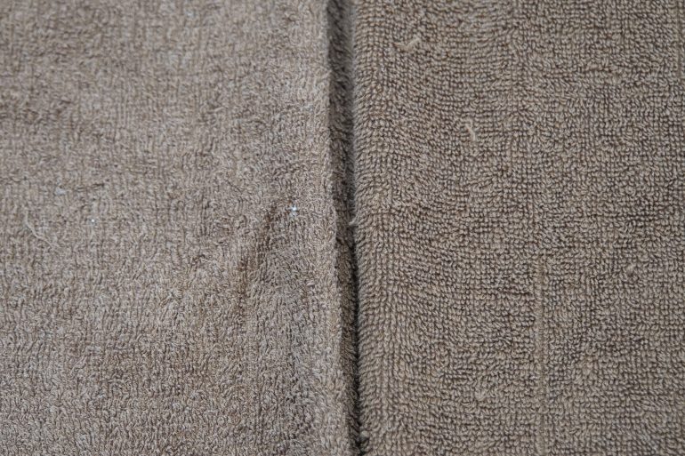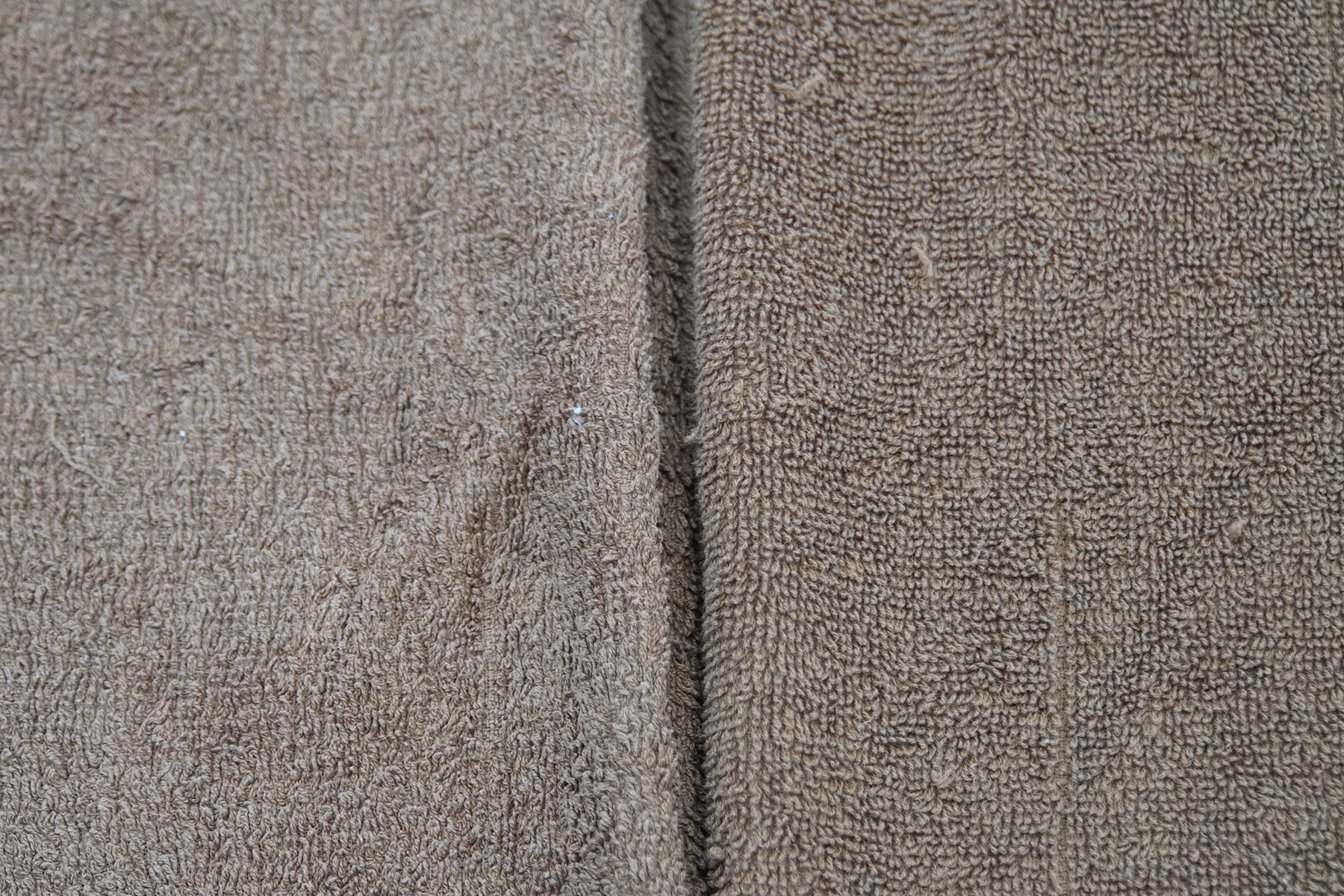タオルが長年の使用でゴワつくのは、繊維がつぶれるだけでなく、普段の洗濯で落としきれなかった皮脂や洗剤カスが少しずつ蓄積するのが原因。